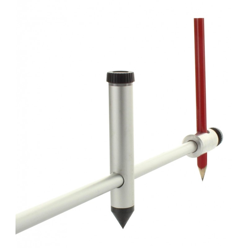 A körző jelölő szárába csavarosan befogható ceruza, marker, toll, karcolótű és kés is. Az állítható körző 50 cm-es hosszban kapható, további 100 cm-es toldóval a körző meghosszabbítható. A körző erős alumíniumból készült.