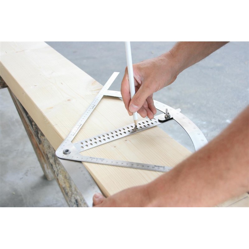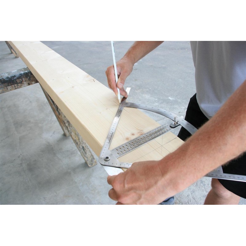 Az egyik leggyorsabb rajztechnika a Alpha kettősszögű derékszöggel történhet. A készülék használható az összes Tetőszabási és lekötési munkálatoknál. Az eszközzel minden féle szabási munkák és annak szögeinek meghatározására, felrajzolására mint pl: csonkaszarufák (sifterek), szarufák, élszarufák, vápaszarufák , kármik (horgolás) és lépcsők, valamint egyszerű vagy dupla beeresztések, fakötések felrajzolására alkalmas. Állítható szögmérőre, sáskalábra vagy rajzsegédre már nincs szüksége.