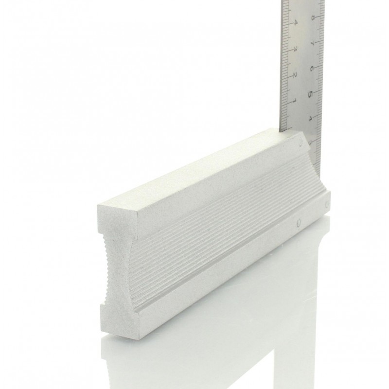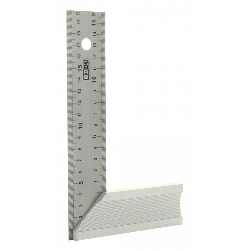 A derékszög bordázott markolat 45°-os szögben csatlakozik a mérőszárhoz. A száron kettő oldali mart fekete milliméter kiosztás található, mely jól olvasható. A nulla pont alul a markolat belsejétől, felül a markolat tetejétől indul. Kopásálló kiosztással!