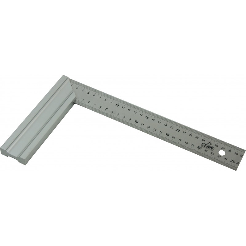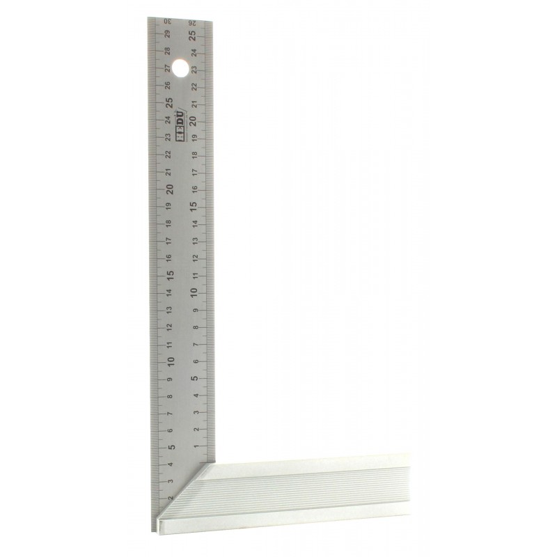 A derékszög bordázott markolat 45°-os szögben csatlakozik a mérőszárhoz. A száron kettő oldali mart fekete milliméter kiosztás található, mely jól olvasható. A nulla pont alul a markolat belsejétől, felül a markolat tetejétől indul. Kopásálló kiosztással!