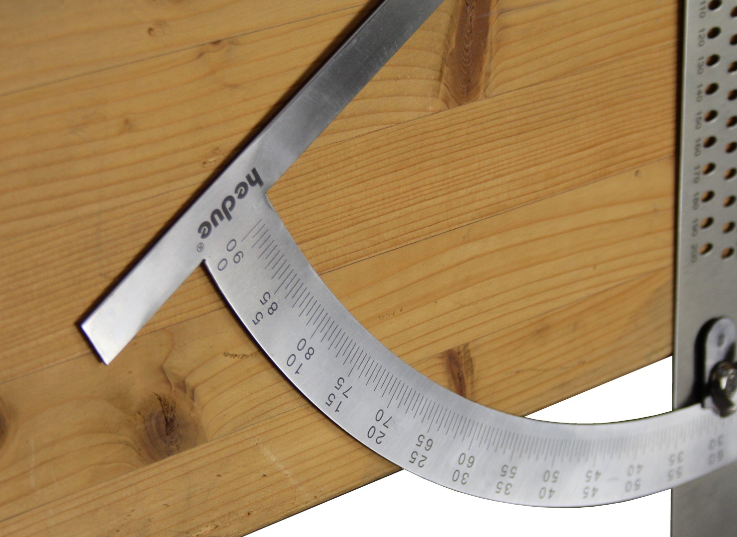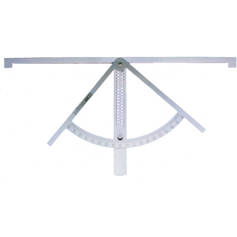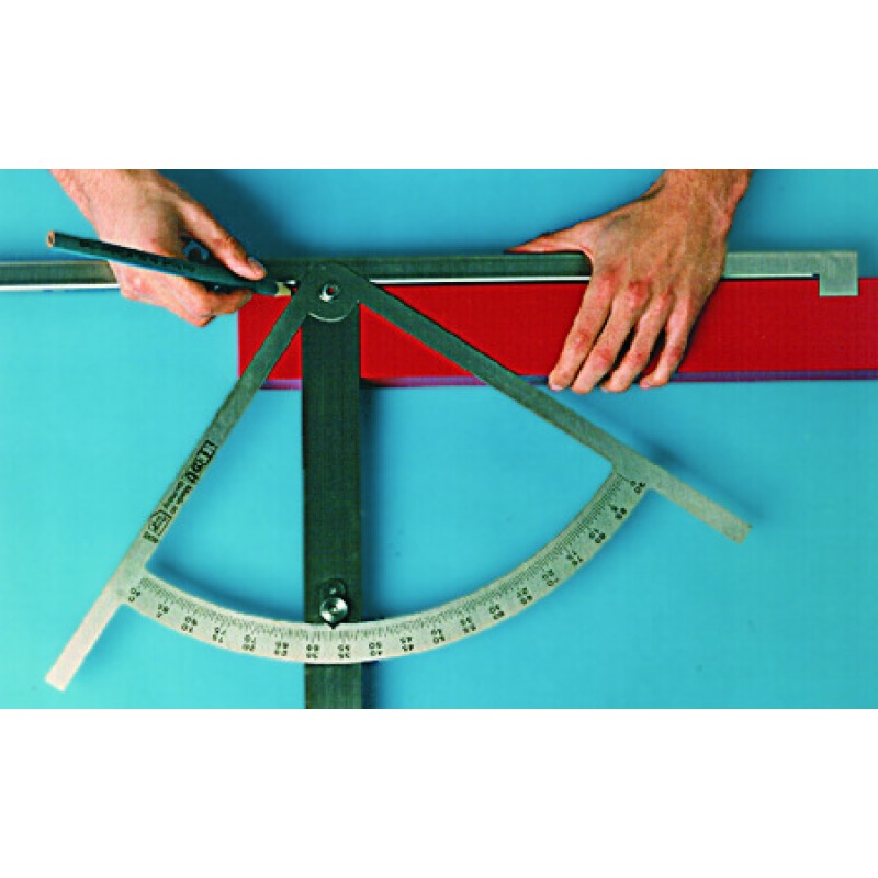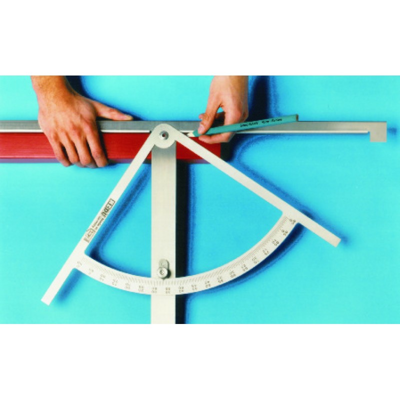 Az Alpha derékszög dupla szárra megkönnyíti a szögek felrajzolását. Az állító szög a 800mm-es szár közepén helyezkedik el, így mind a kettő irányban könnyen használható. A szögíven kétirányú 0,5° részletes szögkiosztás található.