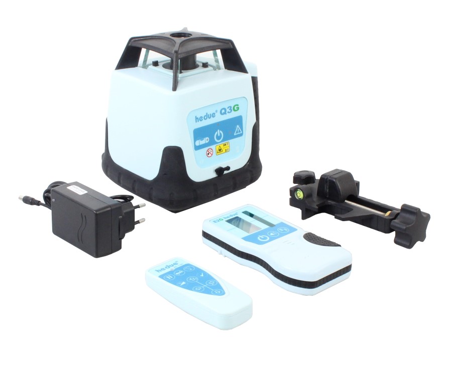 Funkcióit tekintve a hedue QG3 egy automata vízszintes és függőleges szintkijelölésre képes forgólézer. Lehetőség van lejtés beállításra X és Y tengelyen is, manuálisan. Emellett a készülékben megtalálható a vonalmód funkció is. A magasságriasztás a készüléken gombnyomásra kapcsolható, mely az elmozdulás esetén figyelmeztet. Függőleges használat esetén lehetőség van párhuzamos beállításra, és derékszög kijelölésre is. Mind a kettő jól állítható a mellékelt távirányítóval.
