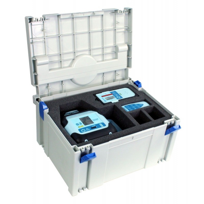A hedue S3 forgólézert a Systainer rendszerdobozban szállítjuk, melyet más gépgyártó cégek is (pl.: Festool, Makita) rendszeresen használnak. A rendszerdobozok előnye, hogy egymáshoz csatlakoztathatók, szállításuk és raktározásuk így még egyszerűbb. A forgólézert hedue E3 lézeres jelfogóval, távirányítóval és univerzális töltővel szállítjuk!