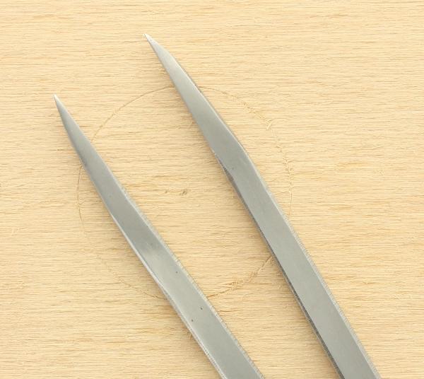Edzett acélból készült körző, polirozva. A körző szárai nagyméretű csavarral rögzíthető.