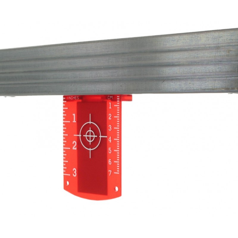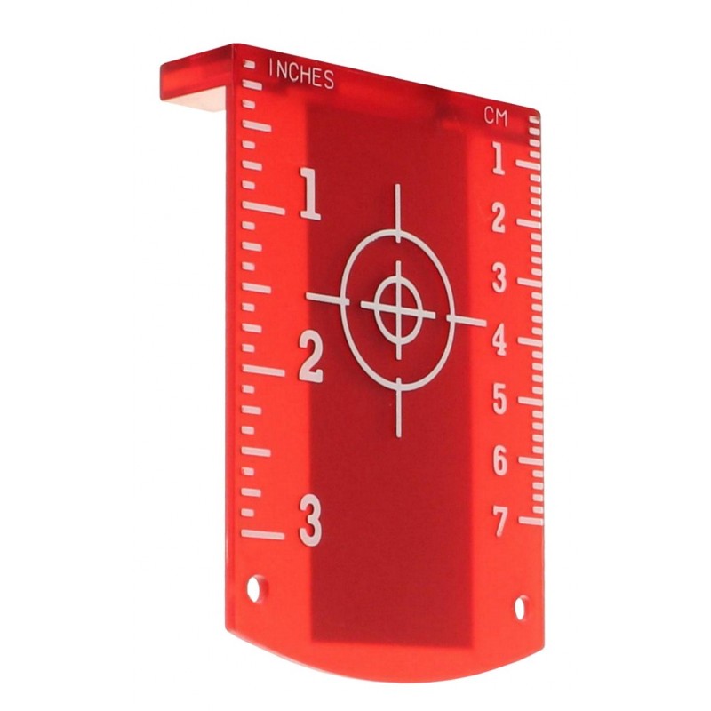 A lézeres céltábla felgyorsítható az építési és szerelési munkálatokat, használatával a lézer fénye láthatóvá válik még erősebb fényviszonyok mellett is. Elsősorban beltéri munkához javasolt. A lézeres céltáblába épített mágnesnek köszönhetően a fém profilokhoz, csövekhez gerendákhoz könnyen felhelyezhető, a céltábla egyik oldala cm, míg a másik Inch-ben van kiosztva.
