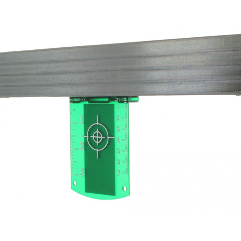 A lézeres céltábla felgyorsítható az építési és szerelési munkálatokat, használatával a lézer fénye láthatóvá válik még erősebb fényviszonyok mellett is. Elsősorban beltéri munkához javasolt. A lézeres céltáblába épített mágnesnek köszönhetően a fém profilokhoz, csövekhez gerendákhoz könnyen felhelyezhető, a céltábla egyik oldala cm, míg a másik Inch-ben van kiosztva.