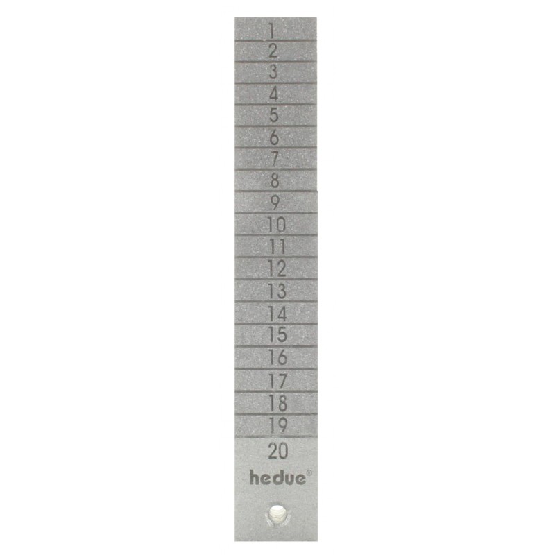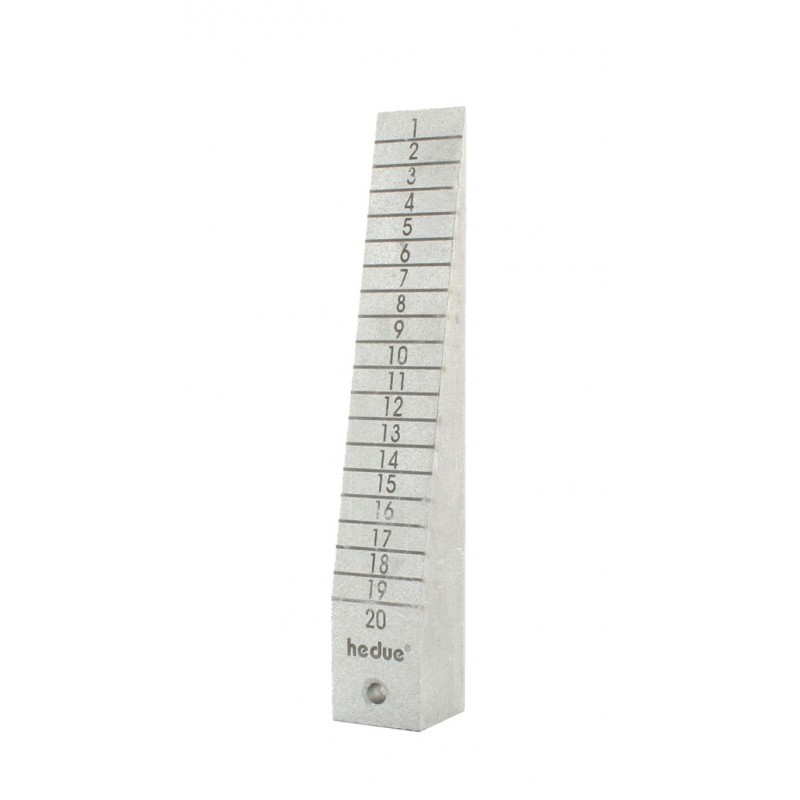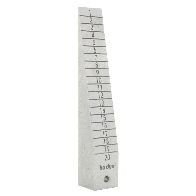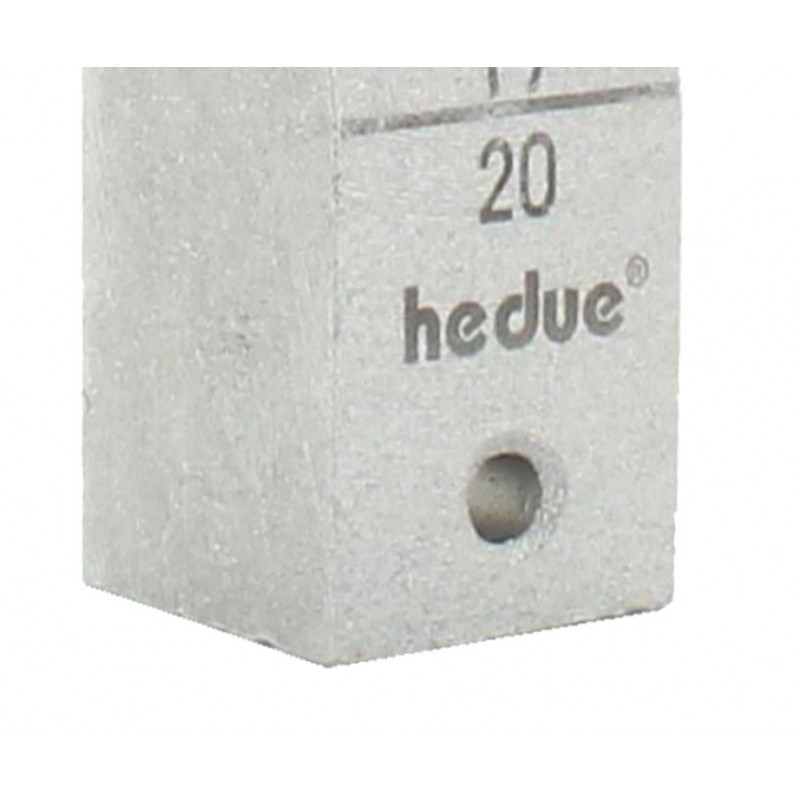 A hedue mérőéke hézagok, rések mérésére ellenőrzésére szolgál. A mérőék mm beosztású, 1mm-től 20mm-ig mérhet vele. A hézagmérő anyaga alumínium, a mm beosztások gravírozva vannak. Az értékek leolvasása 1,0 mm-ben történik.