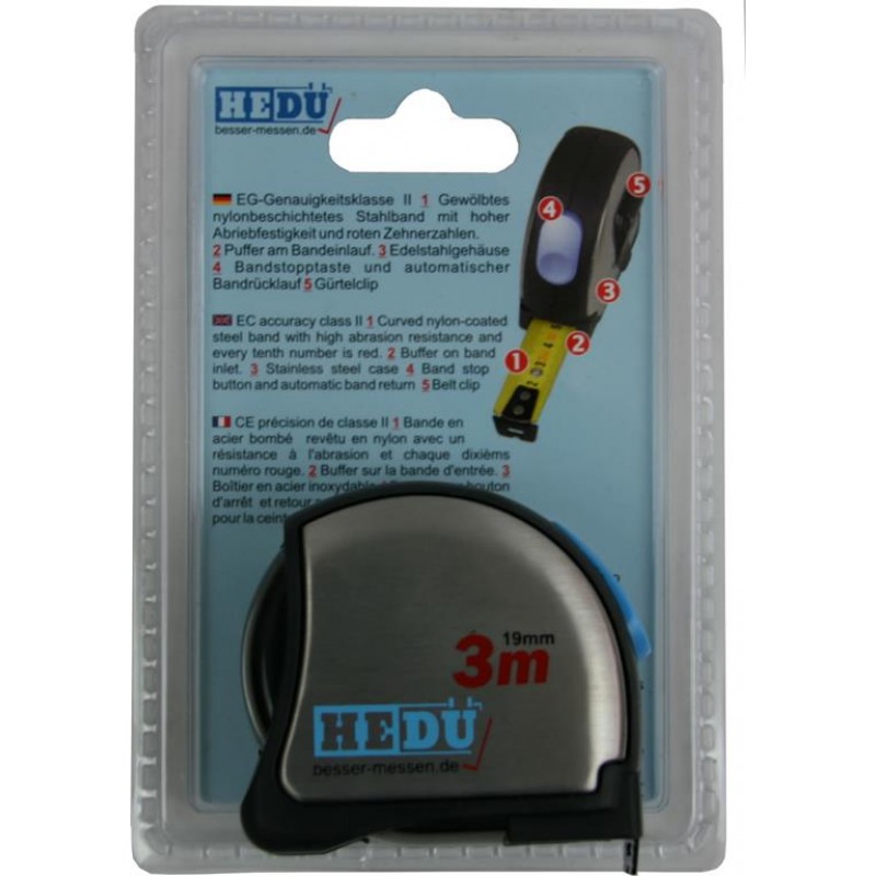 A mérőszalag háza magas minőségű rozsdamentes acél. A mérőszalag a II. pontossági osztályba tartozik. A szalag házán helyet kapott egy stop, egy rögzítő gomb, illetve egy övcsipesz is. A mérőszalag felülete nylon bevonatot kapott, mely így ellenáll a korróziónak és karcolásoknak. A szalag szélessége 19 mm, a tízes értékek pirossal vannak kiemelve!