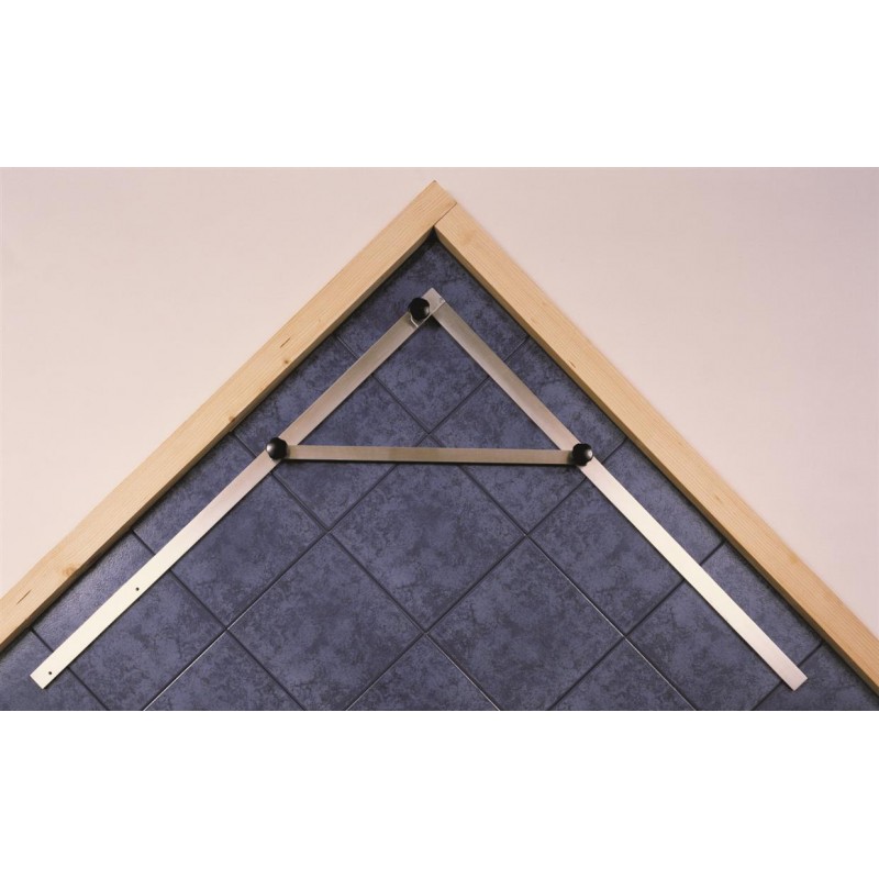 A nagyméretű derékszöge 45 és 90°-ban is használható, köszönhetően a gyárilag elhelyezett rögzítési pontnak. A derékszög szárait egy nagyméretű csavarral lehet rögzíteni. A derékszög anyaga 8mm vastag erős alumínium. Szállítása fa dobozban történik.