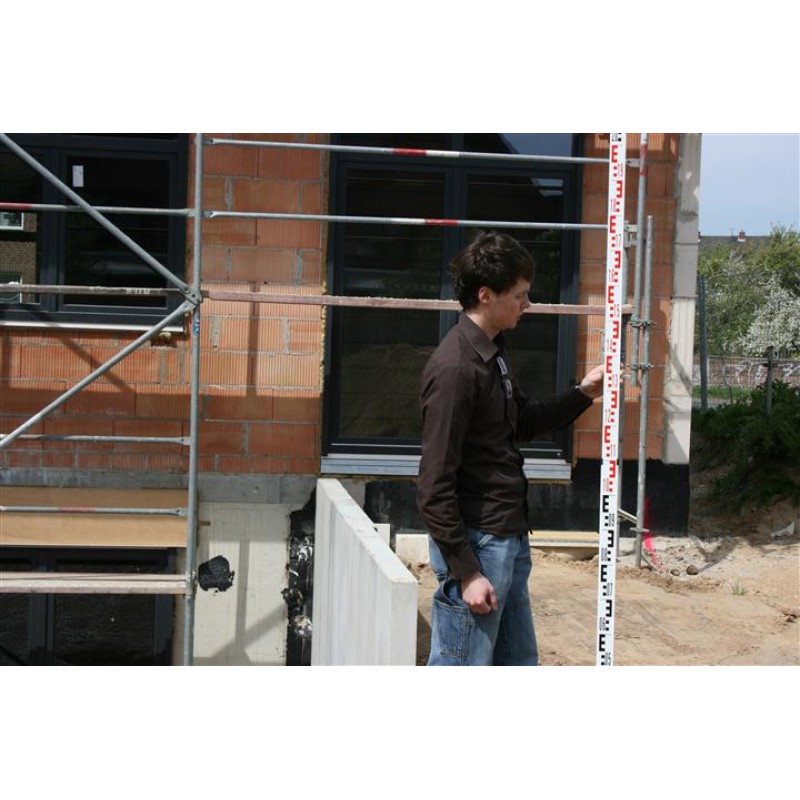 Szintezőlécként használható optikai szintezőkhöz, szintkülönbségek számításához, a szintezőléc pontos beállításhoz dobozlibellát mellékelünk. A fordított milliméter kiosztás miatt mérőlécként is hazsnálható! Csak húzza ki egy nyílás vagy belső fal között, az eredményt azonnal leolvasható a mérőléc utolsó tagján.
